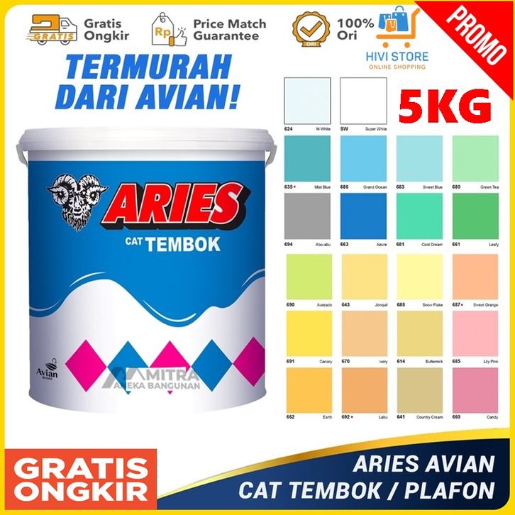 5KG Avian ARIES Avitex Cat Tembok Plafon a Kaleng GaWarnlon