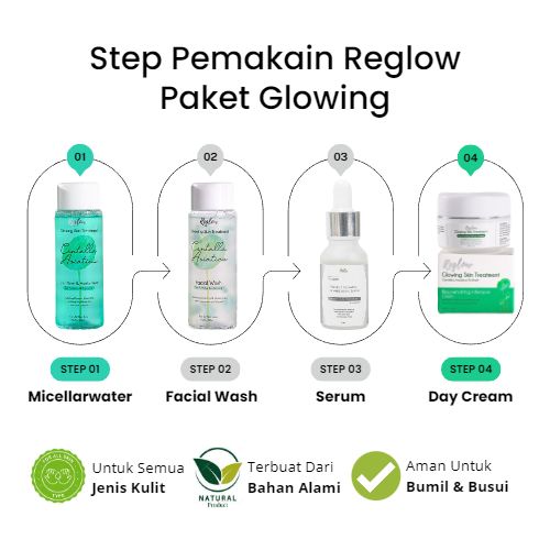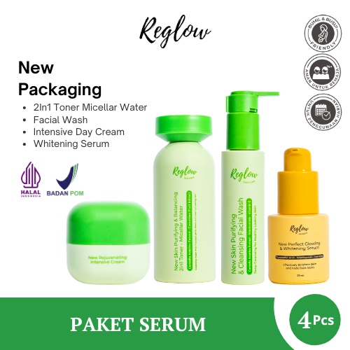 REGLOW 4PCS PAKET GLOWING Facial Wash + Day Cream + Serum + Toner Skincare Dokter Shindy Original BPOM