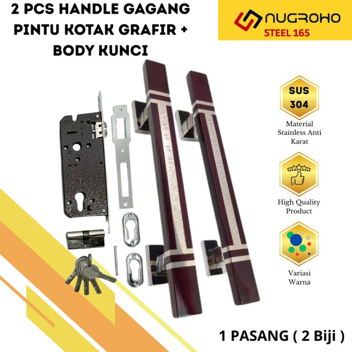 Handle Pintu Rumah Stainless 33, 45 ,60cm Set Body Kunci Tarikan Gagang Pintu Rumah Minimalis Pegangan Pintu Rumah Hande