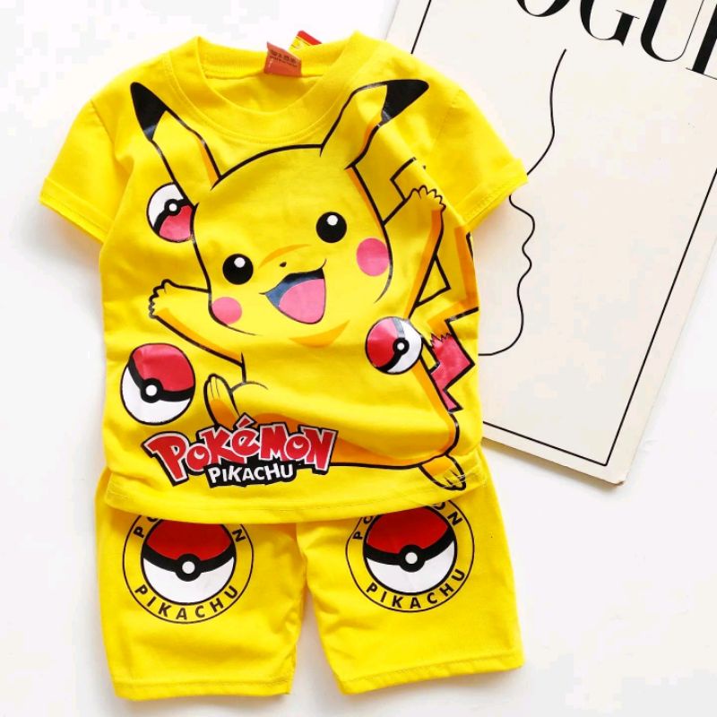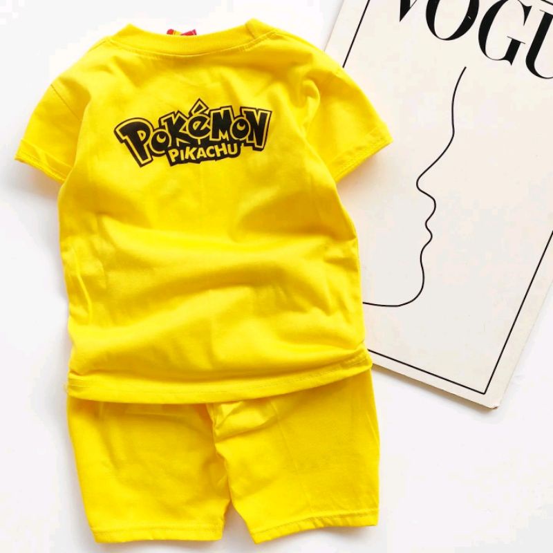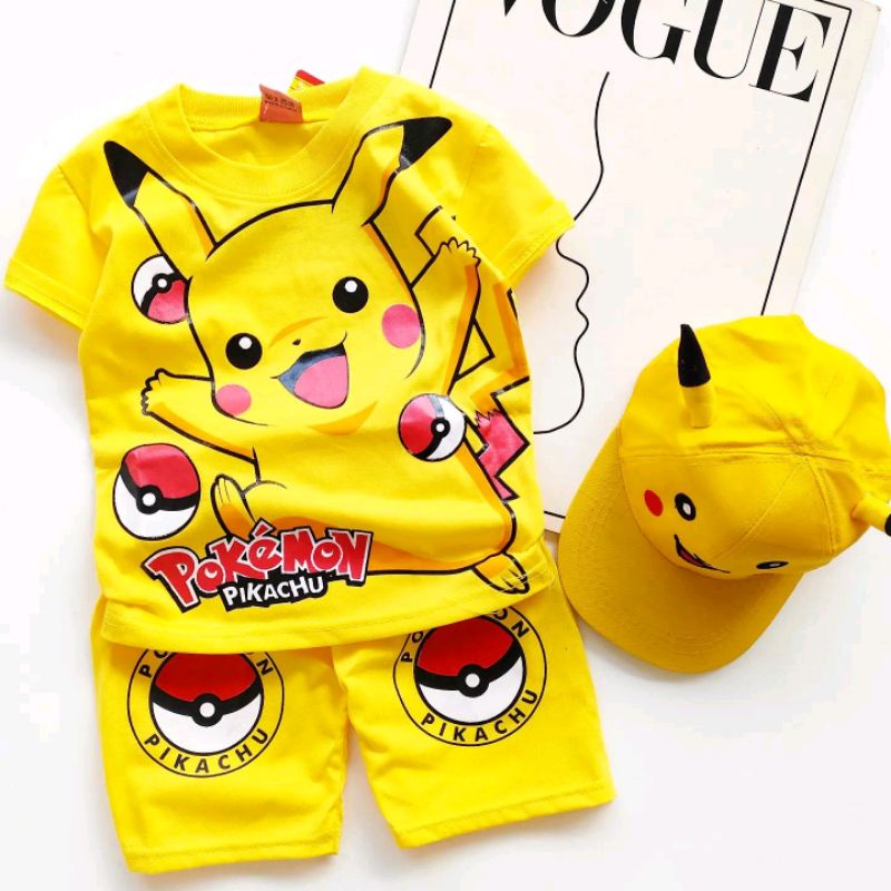 SETELAN BAJU ANAK POKEMON PIKACHU COWOK CEWEK GRATIS TOPI UNTUK UMUR 1-10 TAHUN