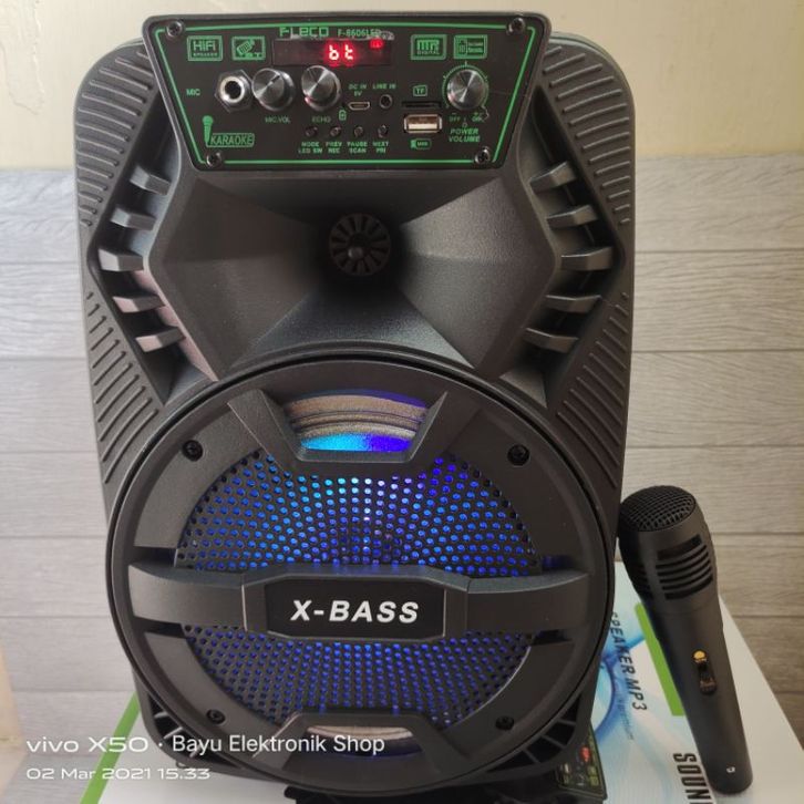 Speaker Bluetooth Karaoke Fleco F-8606/JL-008 8,5 Inch Gratis Microphone Super Bass /Salon Aktif