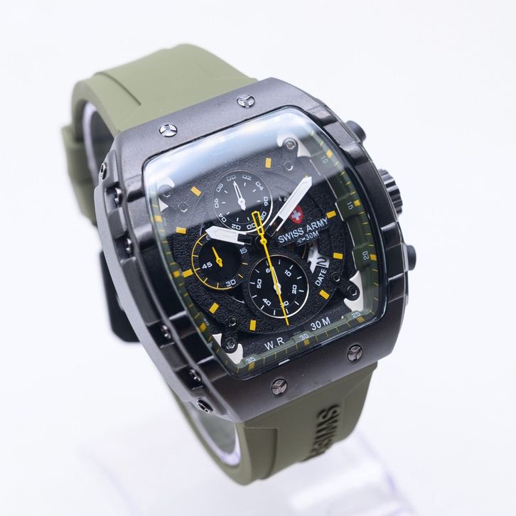 JAM TANGAN SWISS ARMY ORIGINAL Jam Tangan Pria Swiss Armi-HB Tali Rubber Body Stainlees Chrono&Tanggal Aktif