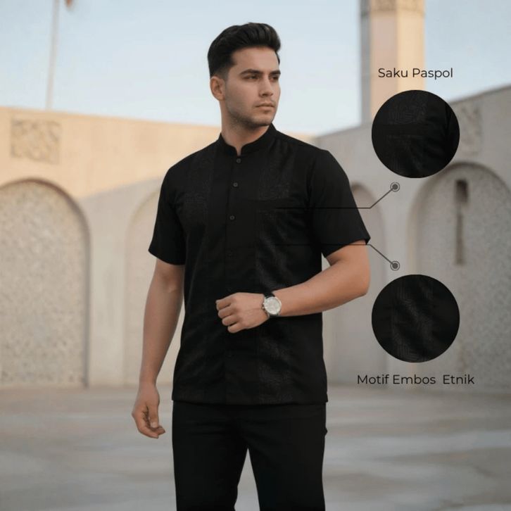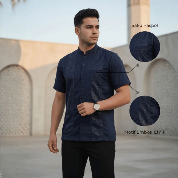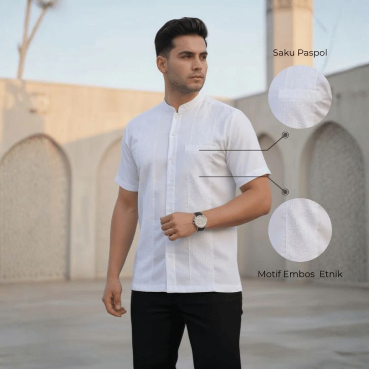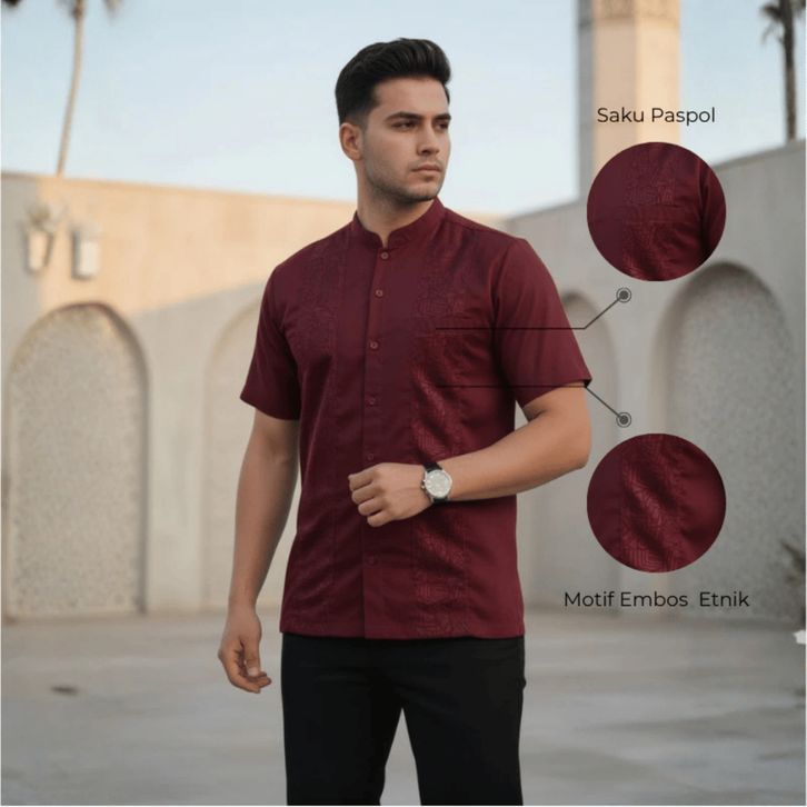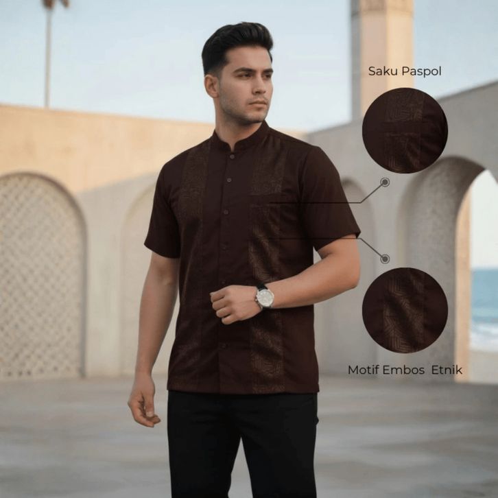 Baju koko Pria Dewasa Lengan Pendek Motif Embos Katun Toyobo Premium