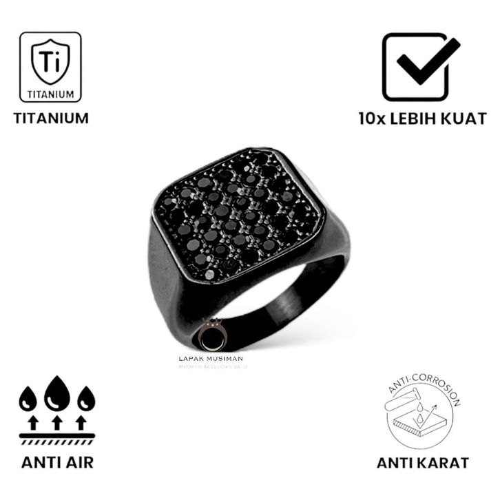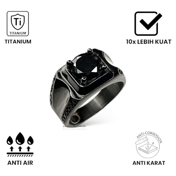 Cincin Pria Real Titanium Premium Black Edition Anti Karat