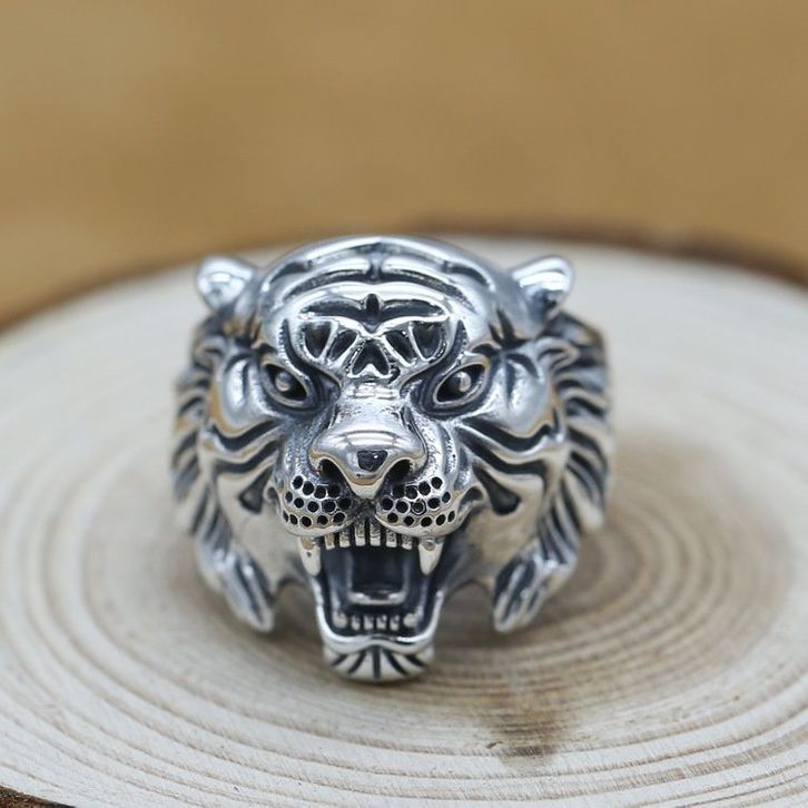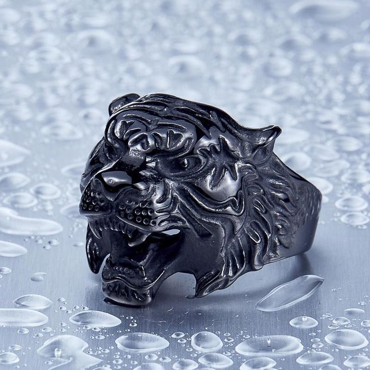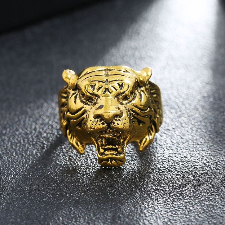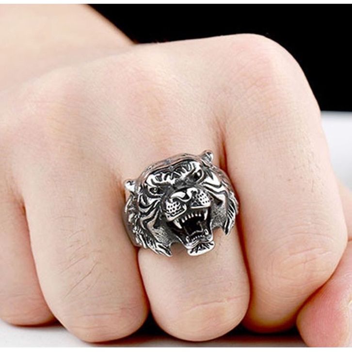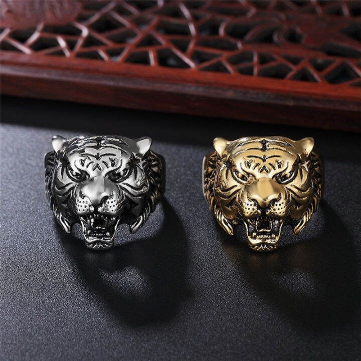 Mode untuk Pria Gaya Punk Baja Cincin Kepala Harimau prhia san Cincin