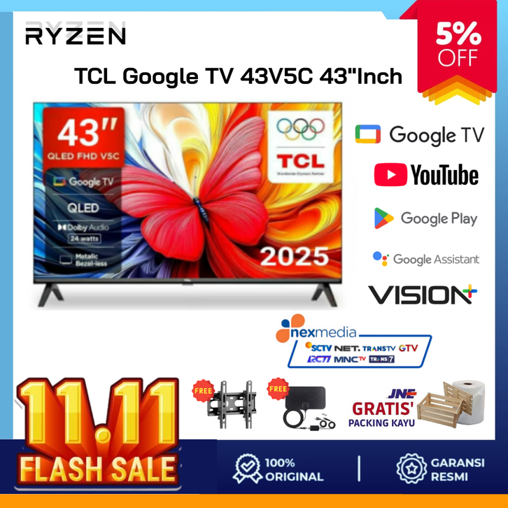 TCL Ultimate QLED FHD TV 43 inch V5C - HDR 10 - Dolby Audio - Google Play - Youtube - Smart Android - tcl google tv