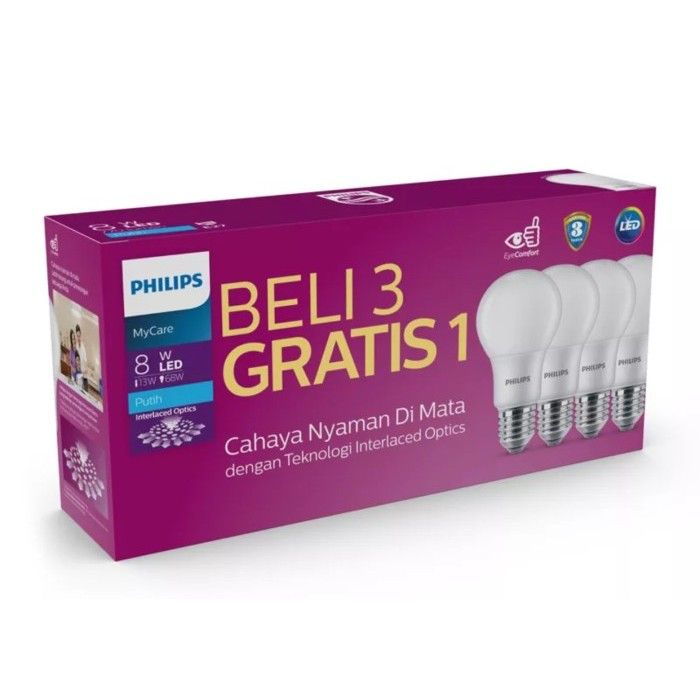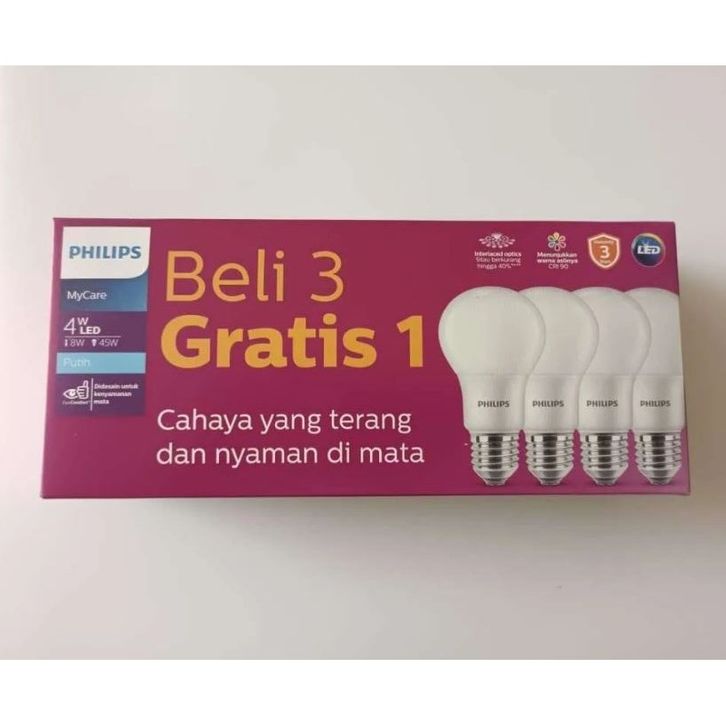 Lampu Led Rumah Philips Paket Beli 3 Gratis 1 LED Bulb 4W 6W 8W 10W 12W 14.5W Mycare Bohlam Led Rumah