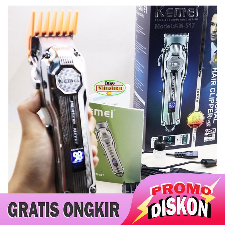 [Mall] ALAT CUKUR RAMBUT KEMEI KM-517 SILVER HAIR CLIPPER MESIN POTONG RAMBUT