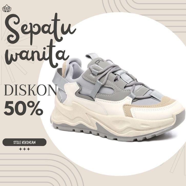 Sepatu Wanita Sneakers Jungkok Sport Shoes Grey Krem 129betsseller Realpics Termurah Terlaris