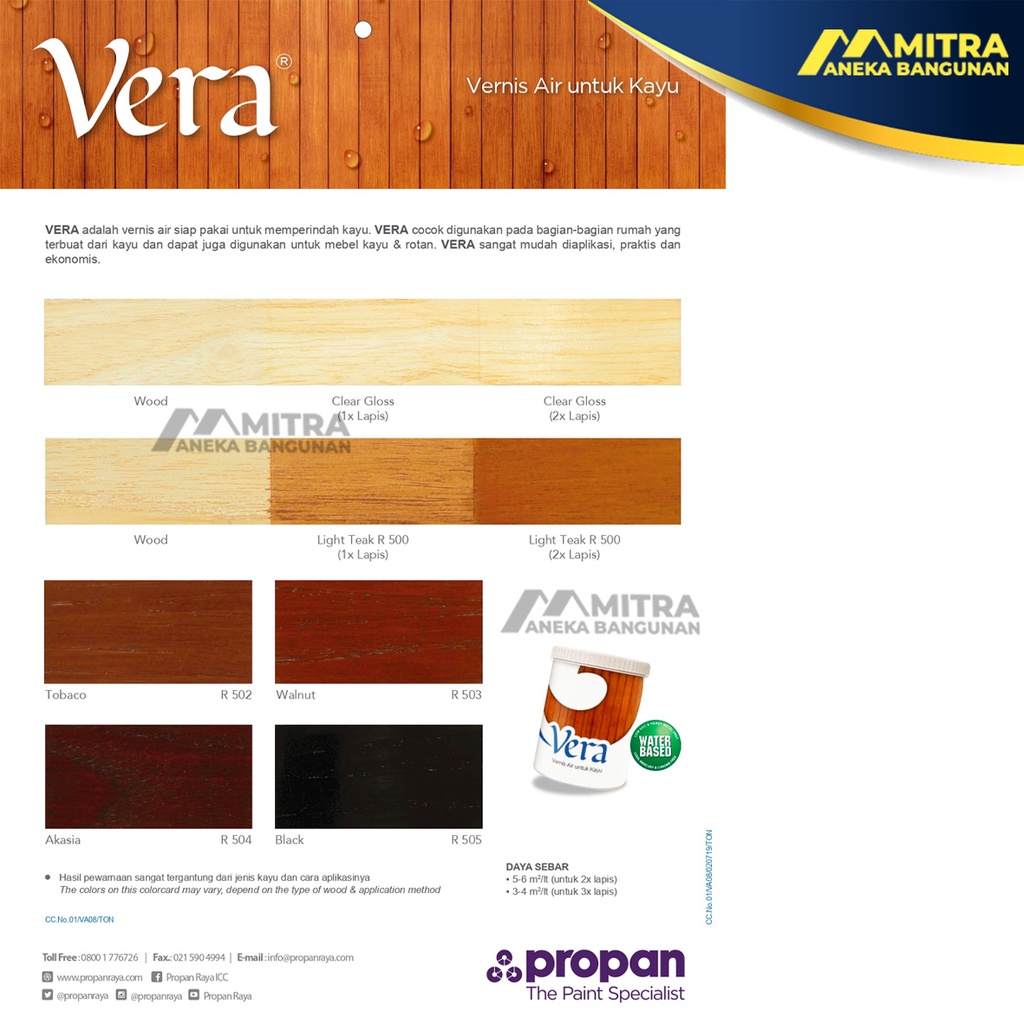 PERNIS KAYU PROPAN VERA / WOOD STAIN PROPAN / CAT KAYU VERNIS PELITUR PLITUR POLITUR PROPAN WATER BASED