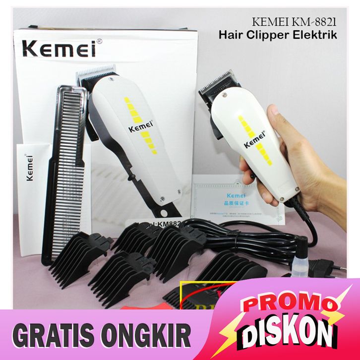 DISKON/ALAT CUKUR RAMBUT KEMEI KM-8821 6 SEPATU COMB CLIPPER MESIN POTONG DAN PANGKAS ELEKTRIK