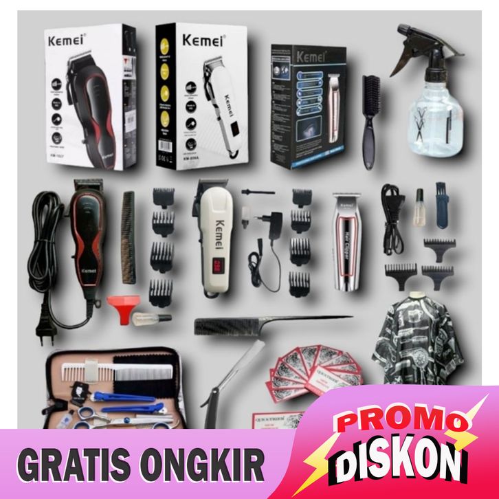 DISKON/PAKET PROFESIONAL ALAT CUKUR LENGKAP ORIGINAL KEMEI || USAHA PANGKAS/BARBERSHOP/SALON