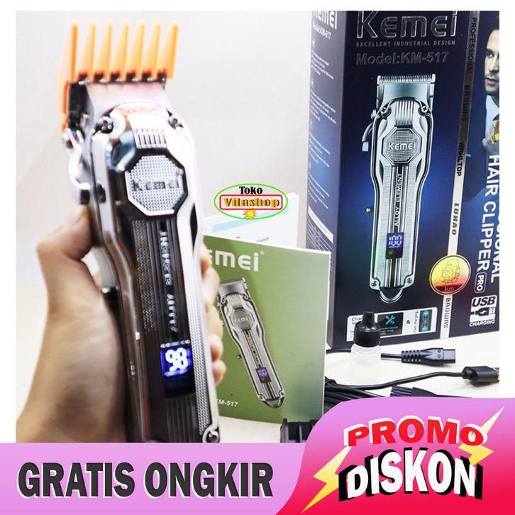 DISKON/ALAT CUKUR RAMBUT KEMEI KM-517 SILVER HAIR CLIPPER MESIN POTONG RAMBUT