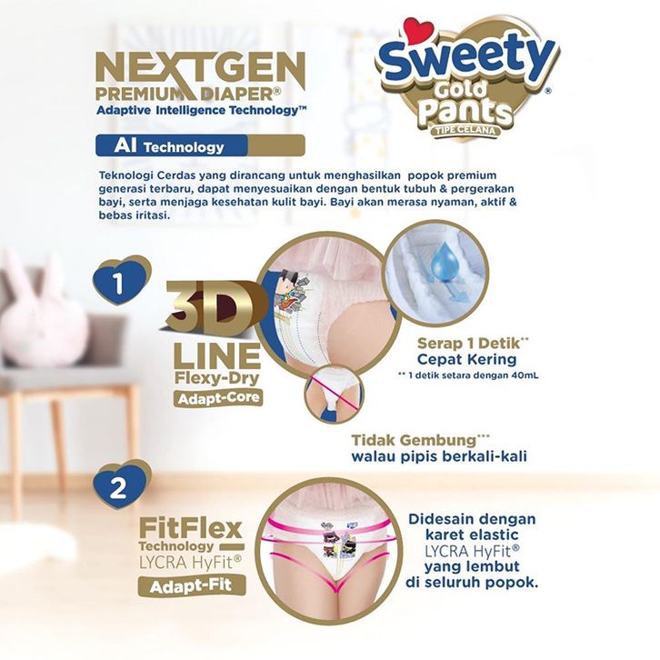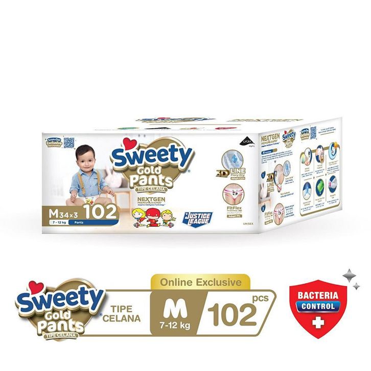 Popok Pampers Pempes Sweety Gold Pants NextGen M 102 Pcs Tipe Celana 1 Dus Termurah