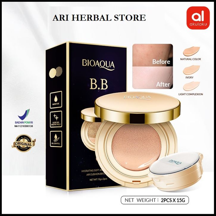 BB Cushion BELIA BIOAQUA BB Cushion + Refill | Netto 15g + 15g | Air Cushion | Coverage | Flawless | Make Up Foundation