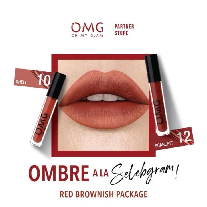 PAKET OMBRE LIPCREAM OMG OH MY GLAM MATTE LAST LIP CREAM (2 PCS) OMBRE LIPS PEWARNA BIBIR WANITA TERLARIS