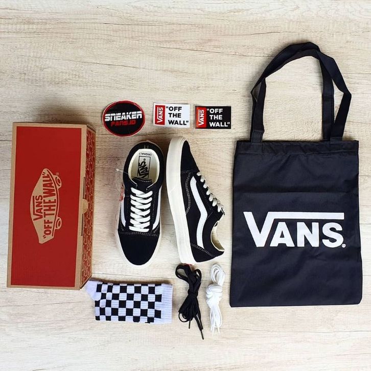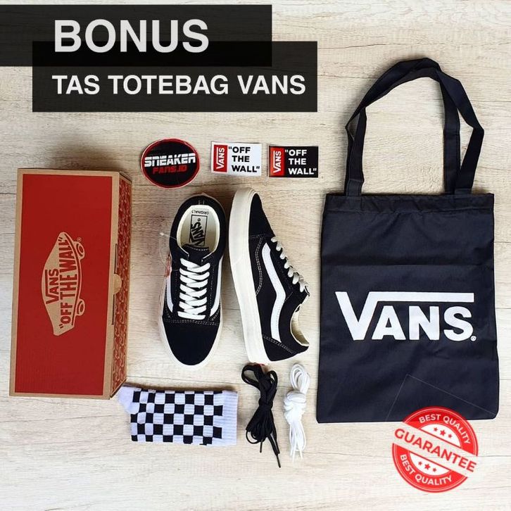 (GRATIS ONGKIR) (BISA ) BONUS TOTEBAG- 100% IMPORT SEPATU VANS OLDSKOOL OG AUTHENTIC BLACK WHITE