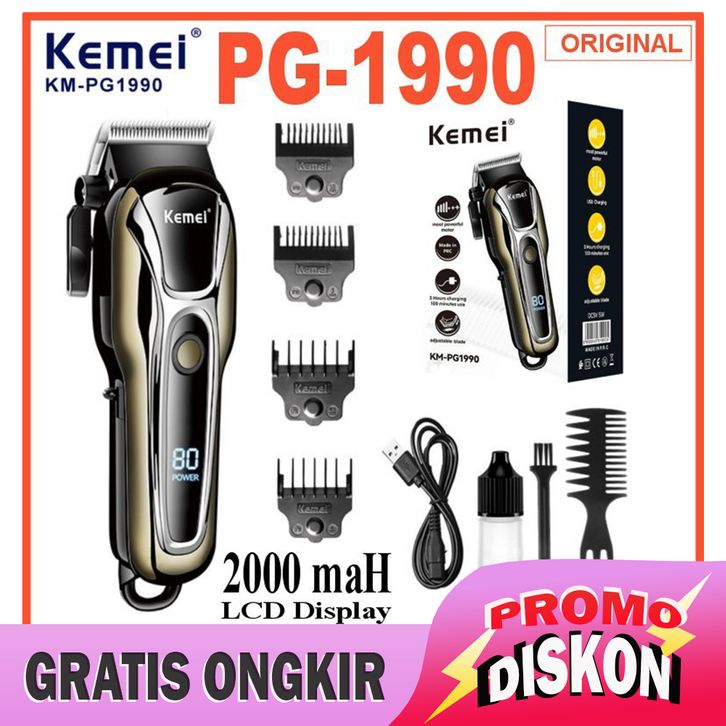 DISKON/KEMEI PG1990 ORIGINAL ALAT MESIN CUKUR RAMBUT CAS BATEREI LCD DISPLAY KM-PG1990 PG1990