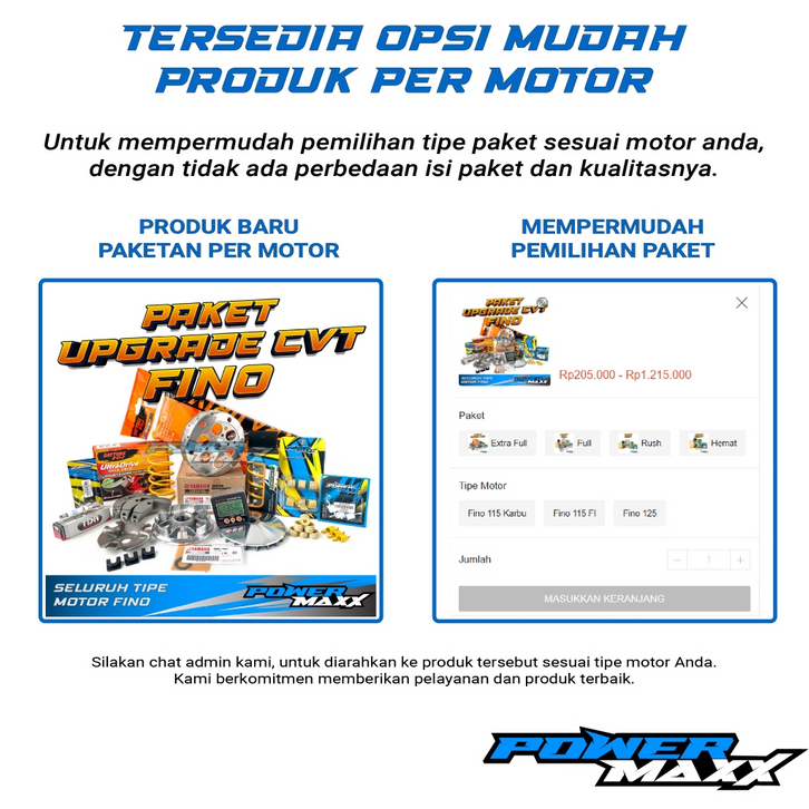 PAKET HEMAT UPGRADE KIRIAN CVT SOUL GT X RIDE FINO XEON FAZZIO FREEGO NOUVO 115 125 KARBU FI RACING MURAH ORIGINAL