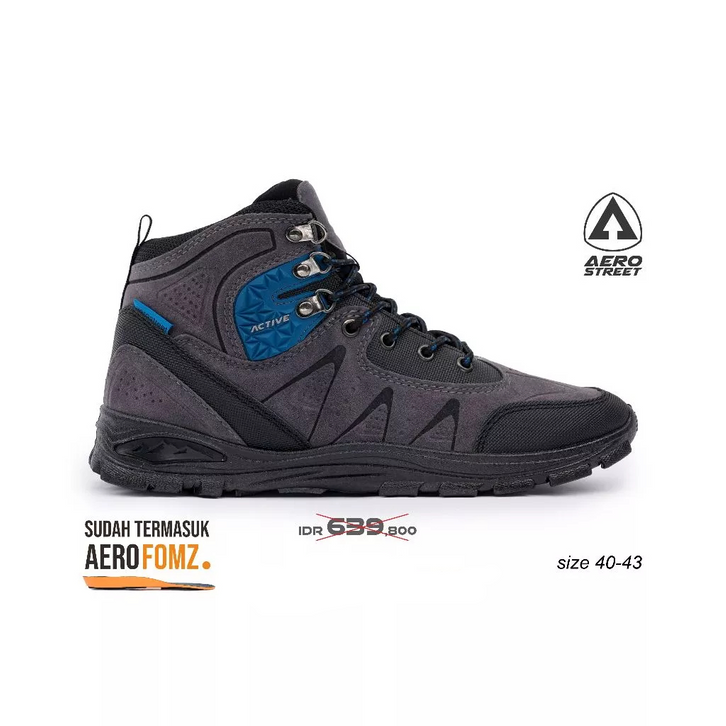 Aerostreet Official Store | Sepatu Pria Aerostreet Active High Hitam Abu Tosca Sneakers Boots Casual Original Store