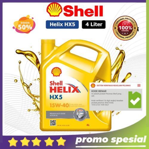 Oli Mesin shell Helix HX5 HX6 HX7 SAE 15W-40 4 Liter Bensin Gasoline Galon HX 5 15W40 4L Diesel Solar 15W 40 4Liter