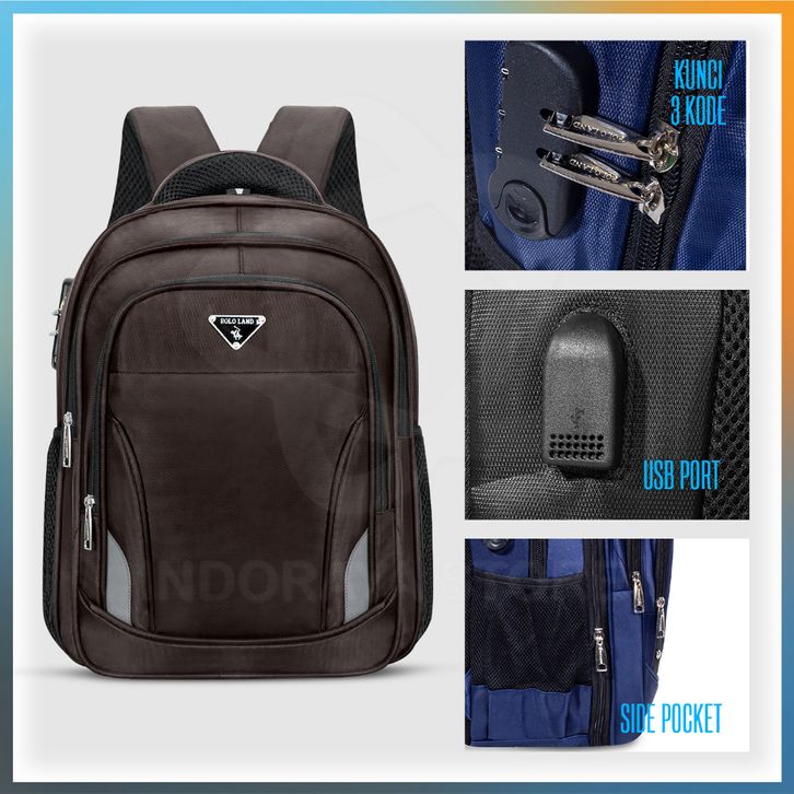 TAS RANSEL PRIA POLO GOLDVERS SEKOLAH 16 INC ORIGINAL BACKPACK PRIA WANITA KEY LOCK FREE USB PORT TAS TERMURAH