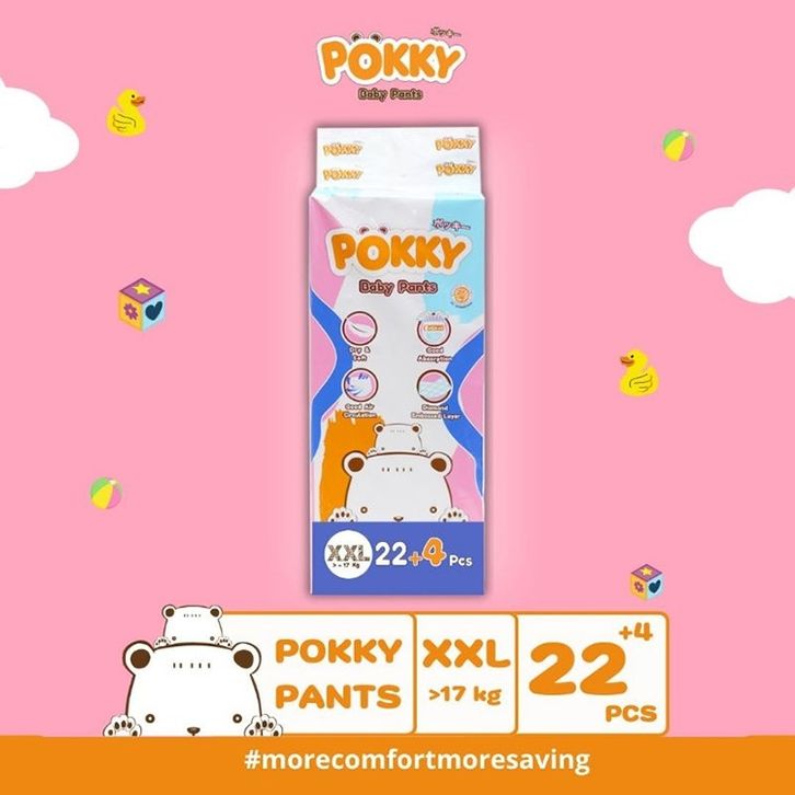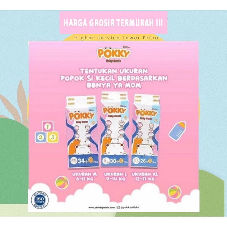 Popok Pampers Pempes POKKY Popok Bayi Murah Size M 34+4 / L 30+4 / XL 26+4 / XXL 22+4 Pcs Tipe Celana Termurah