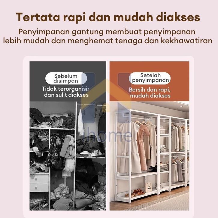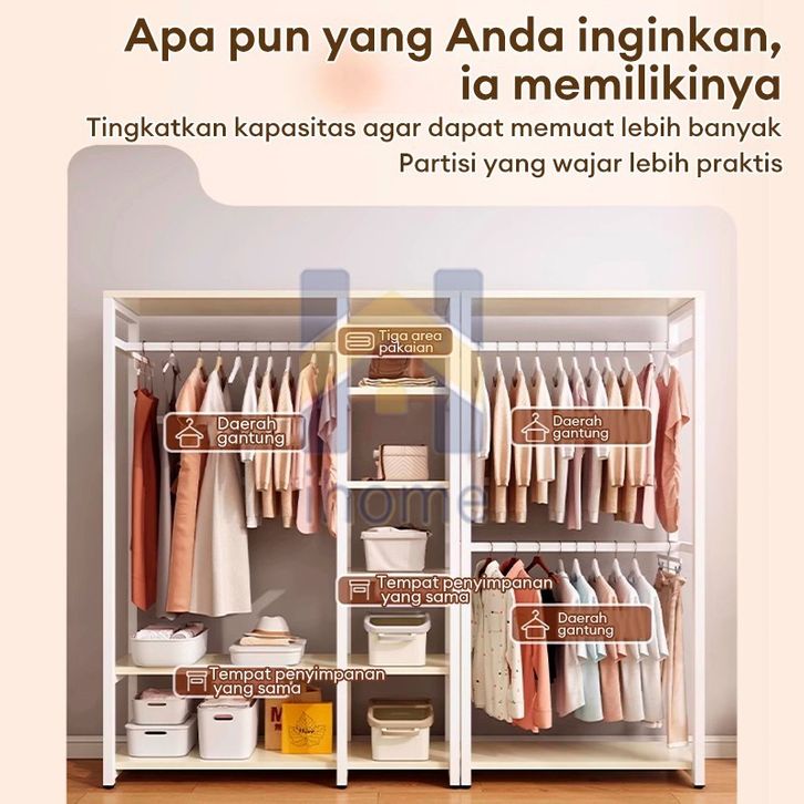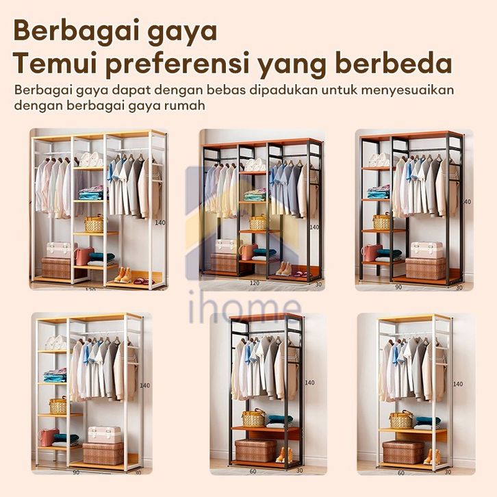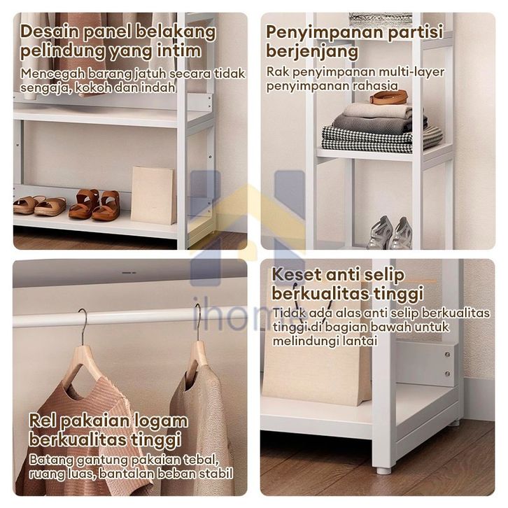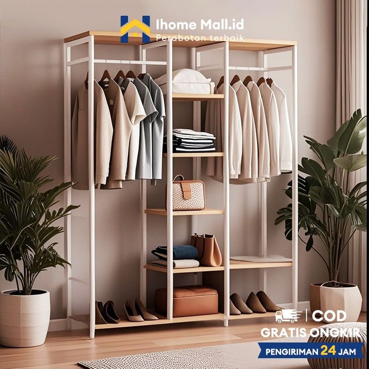 Rak Gantungan Baju Kayu Stand hanger kotak serbaguna Rak Gantungan Baju Dengan Rak 5 Susun lemari pakaian tanpa kain