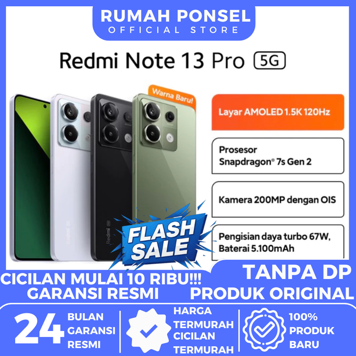 ( OFFICIAL STORE ) Xiaomi Redmi Note 13 Pro 5G - 8/256GB 12/512GB - 16GB Extended RAM - Rumah Ponsel Jakarta