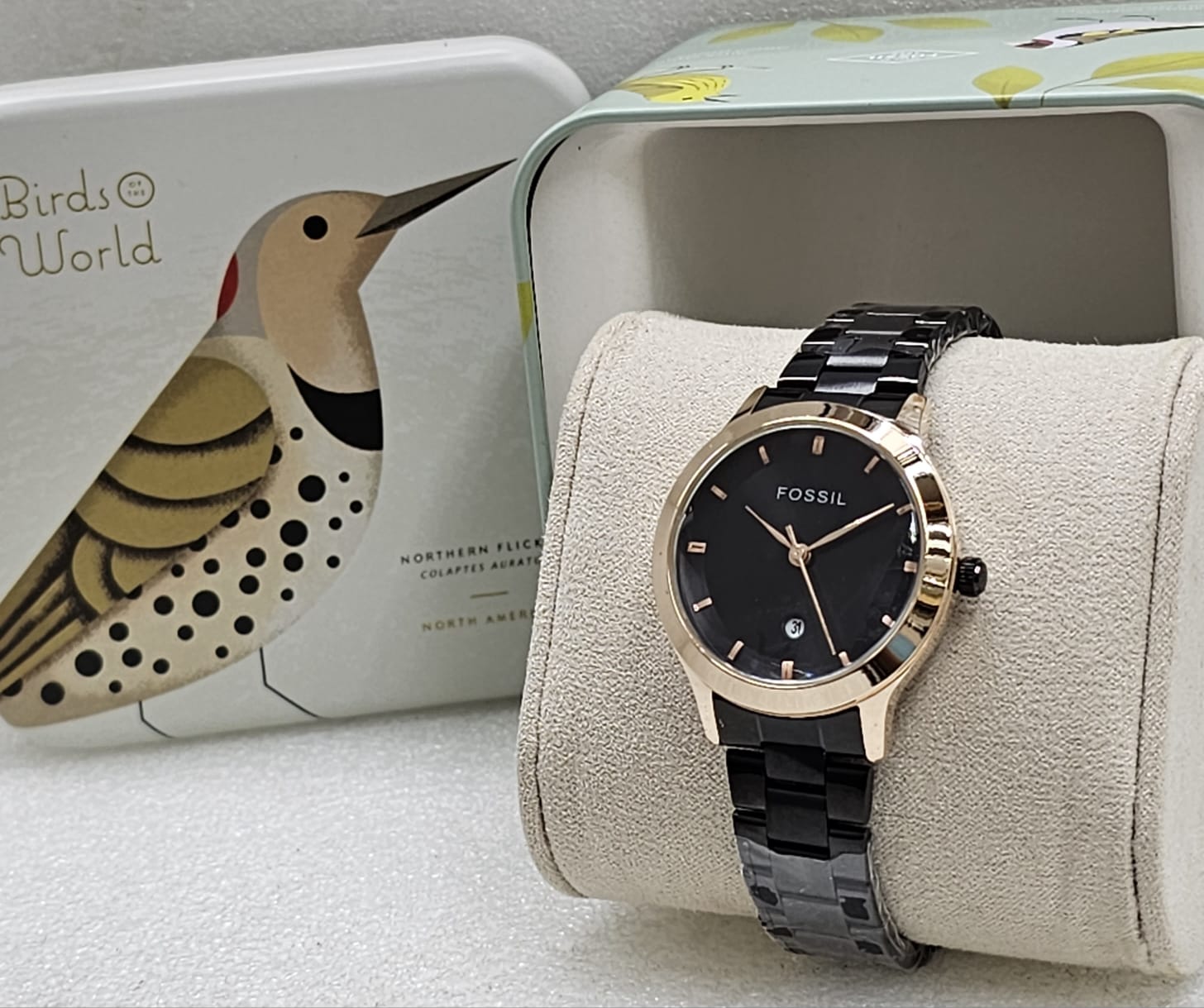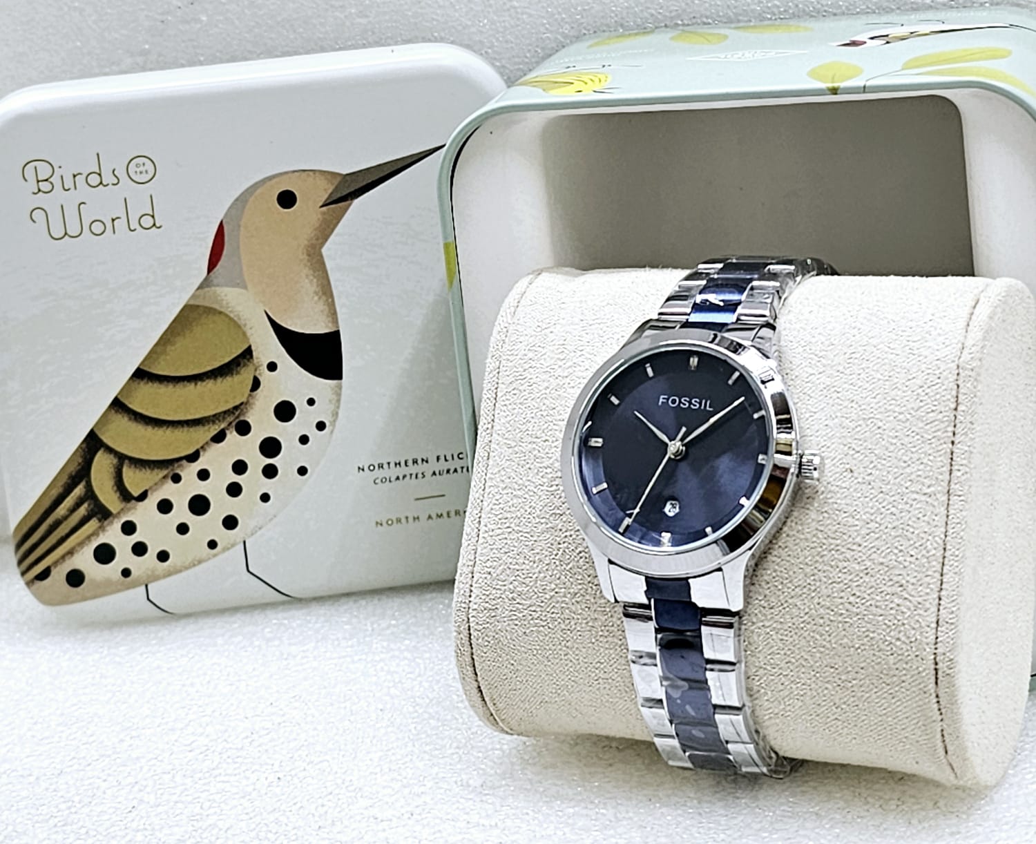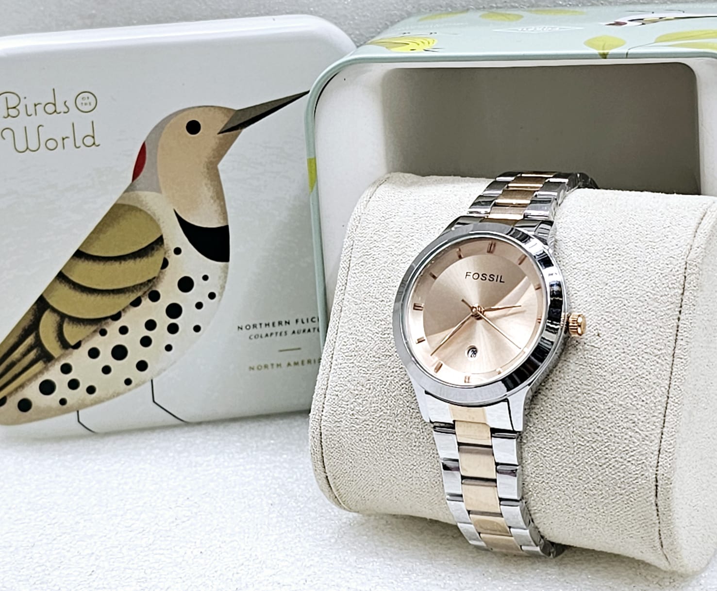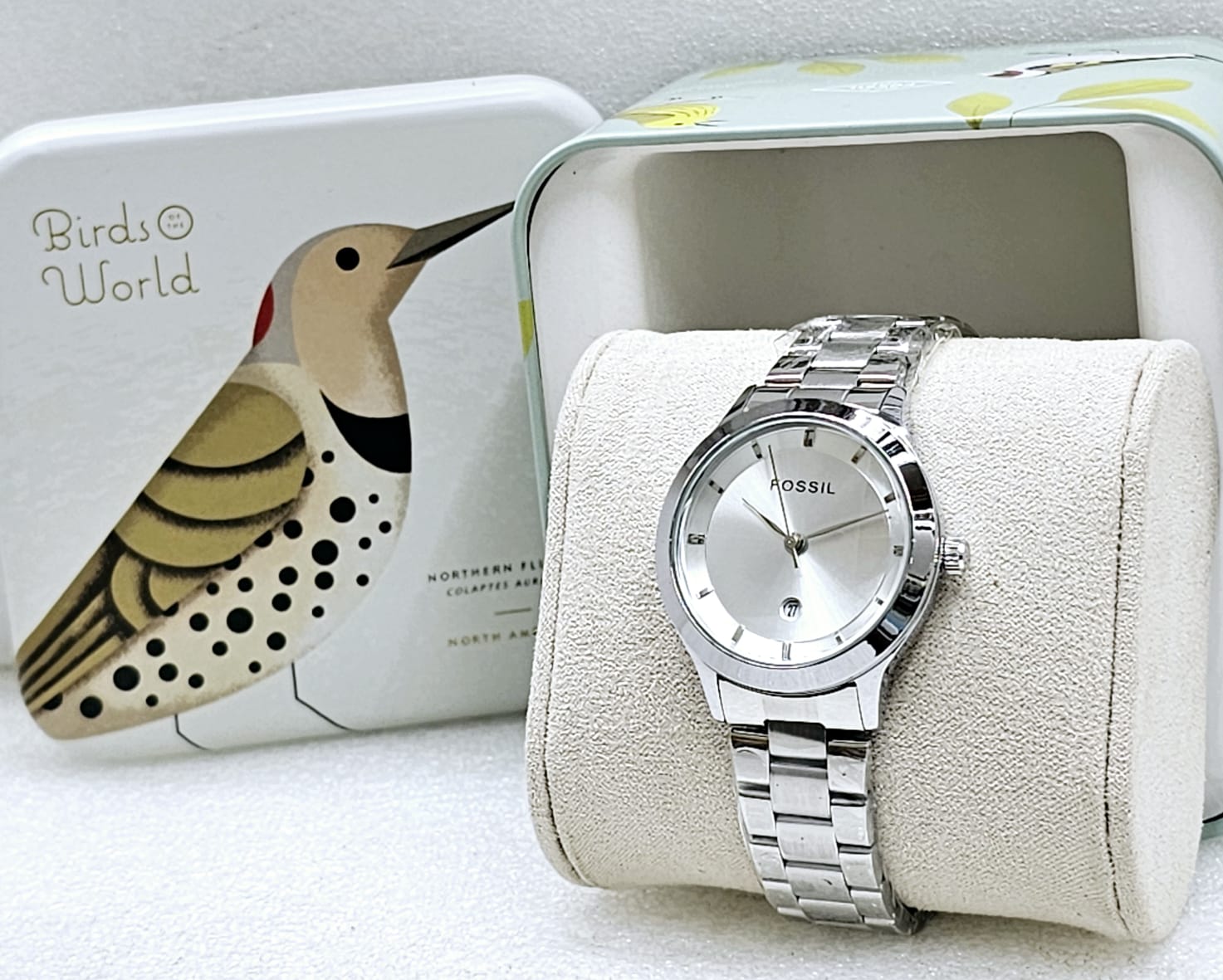 Promo - Jam Tangan Wanita Fossil F71256CT Tanggal Aktif Rantai Free Box Kaleng & Baterai Cadangan