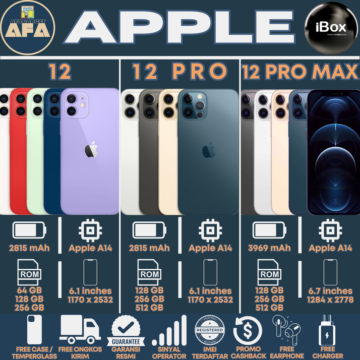 Apple iPhone 12 | 12 Pro Max 256GB 128GB 64GB | Original Garansi Resmi iBox Indonesia