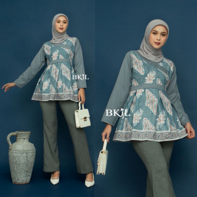 TEY-17 BATIK WANITA ASJ SA HRB026 KENONGO KEMEJA TOSCA PENDEK