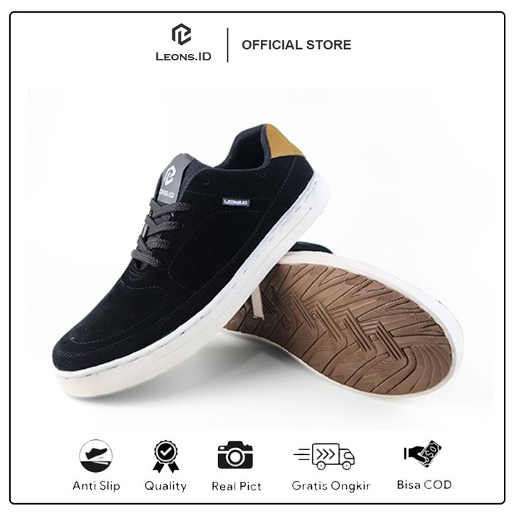HELIOS BLACK | Salisstore - LEON | Sepatu Sneakers Pria Hitam Casual Suede Original