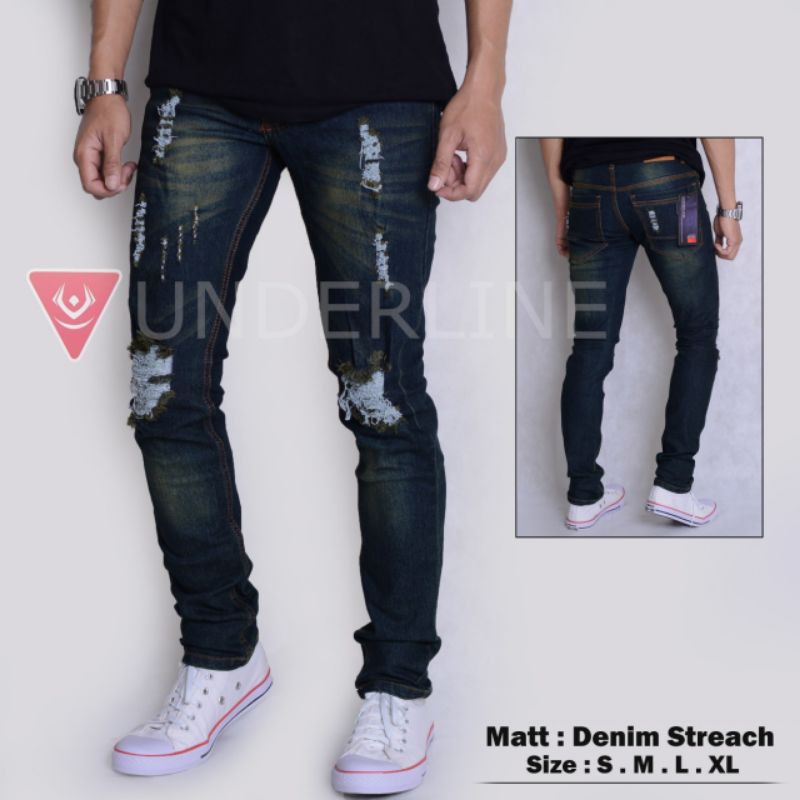 Celana Jeans sobek lutut robek ripped Hitam destroy premium