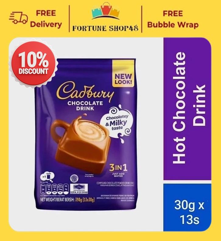 Cadbury Hot Chocolate Drink 3in1 13 Sachet - GRATIS ONGKIR