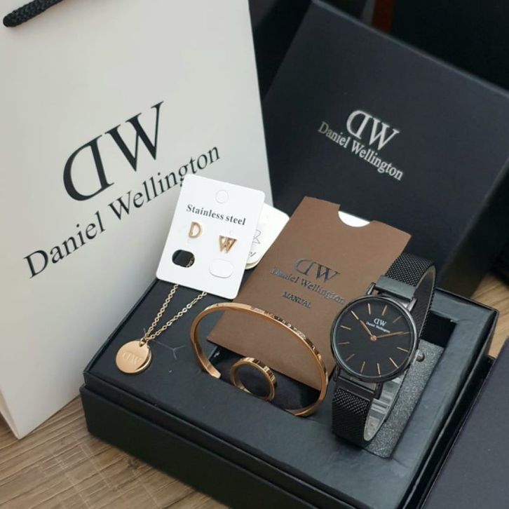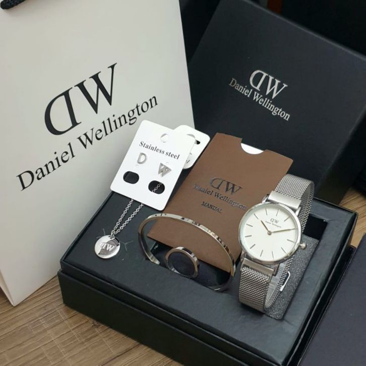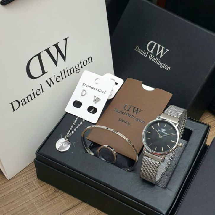 Jam Tangan Wanita Daniel Wellington Tali Rantai Pasir Magnet Fullset Acc, Box Original, Paperbag & Baterai Cadangan