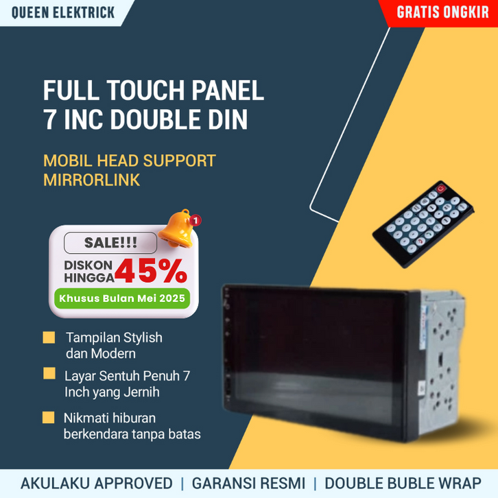 Panel Double 7 Inch Full Touch Din Tv Mobil Perlengkapan Head Unit Universal Support Mirrorlink Skeleton Hemat daya