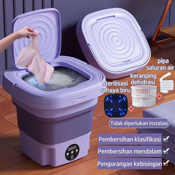Keeone Mesin Cuci Mini Portable 2 Tabun Sterilisasi Cahaya Biru Mesin Pengering Pakaian 8L Mesin Cuci Lipat Otomatis