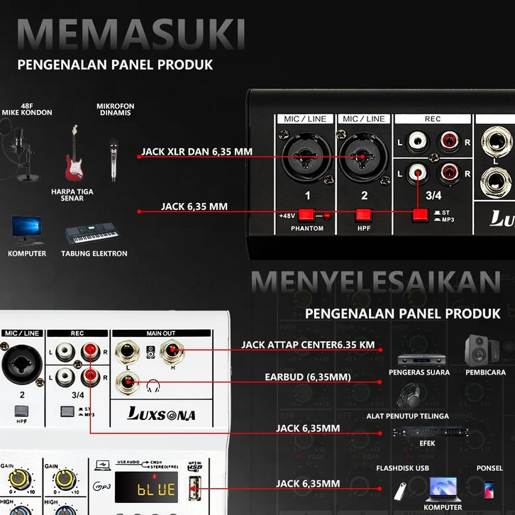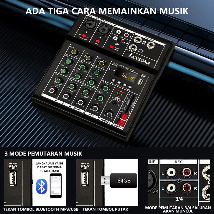 (PROMO) Mixer audio 4 channel profesional/99dsp misker suara/mixer mini dengan Bluetooth/misker audio 4 saluran murah