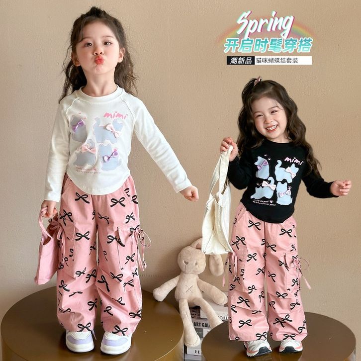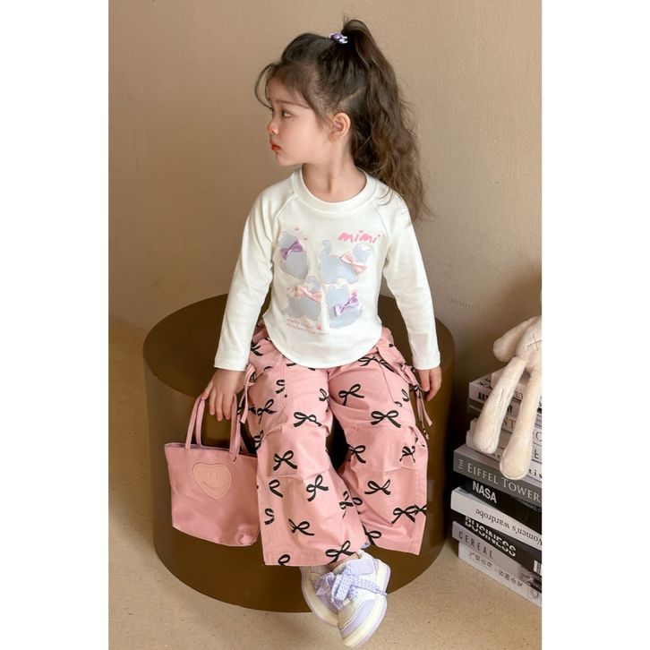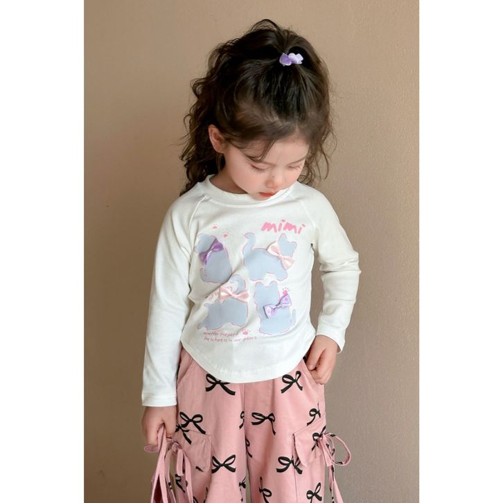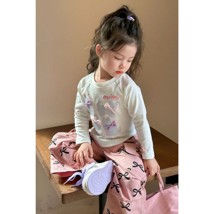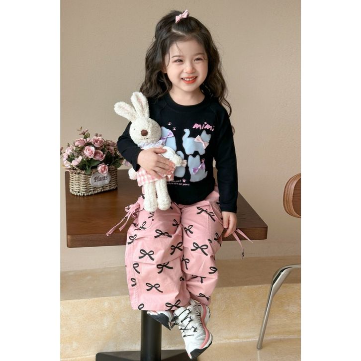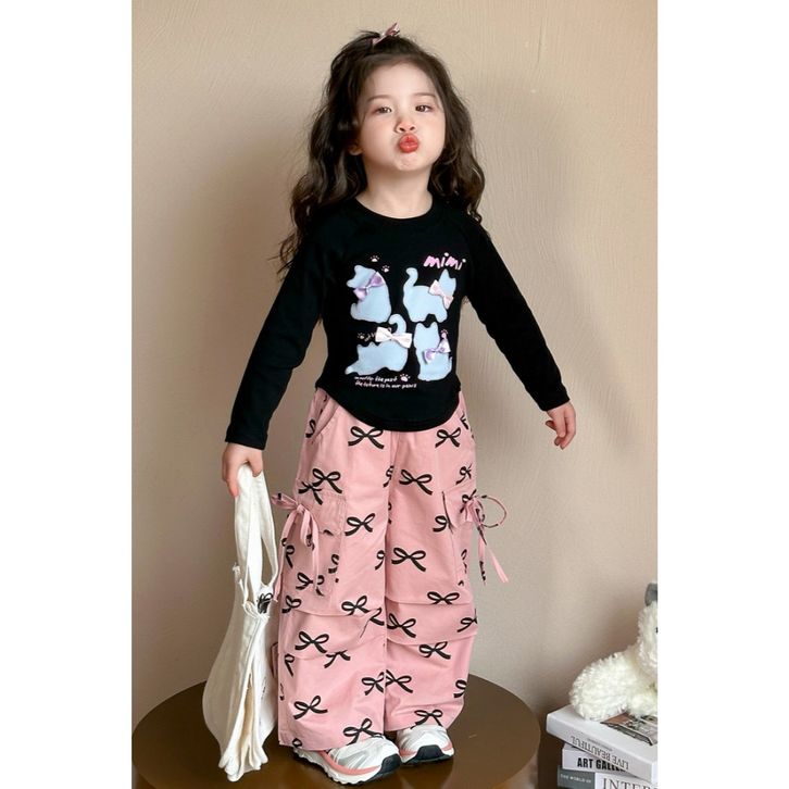 [Star] Setelan Anak Perempuan Size S.M.L.XL.XXL Baju Oneset Kaos Anak Motif Kucing Pita Lucuu Model Pita Mimi Lengan Pan