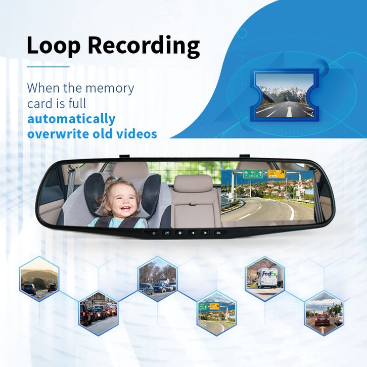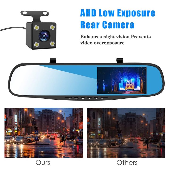Dash Cam Mobil 1080P Full HD 4.3 inch Rearview Mirrors DVR Dual Lens Front Rear 24 hours Loop Recording