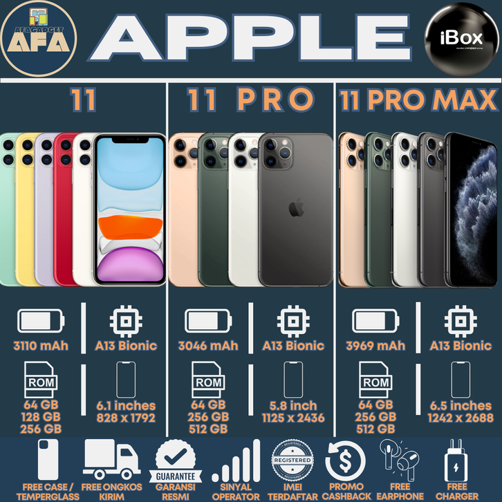 Apple iPhone 11 | 11 PRO MAX 256GB 128GB 64GB | Original Garansi Resmi iBox Indonesia