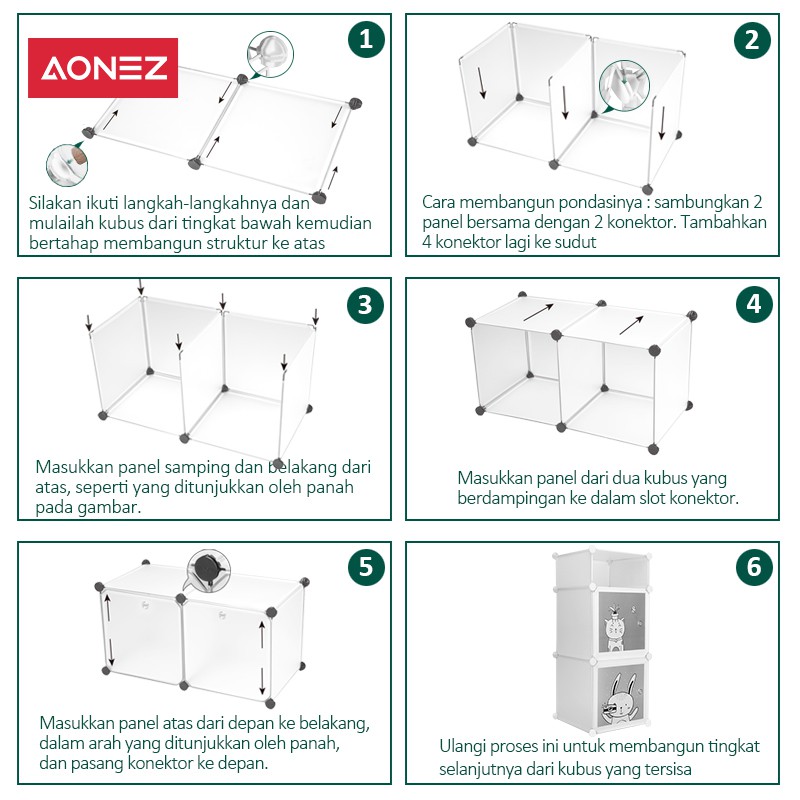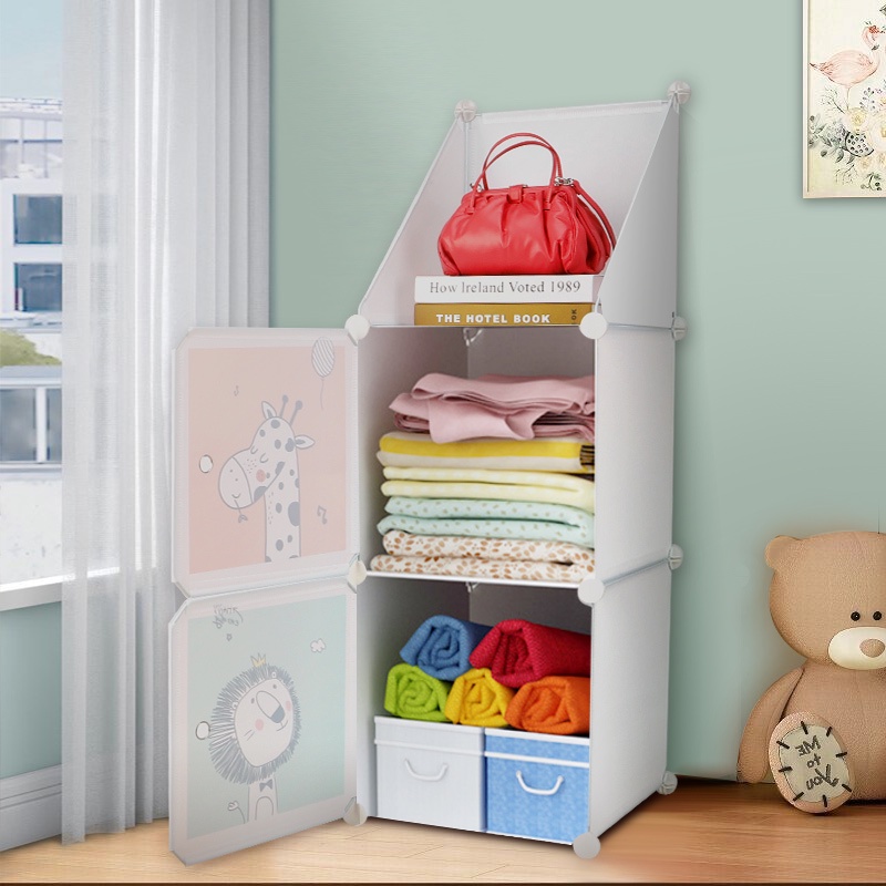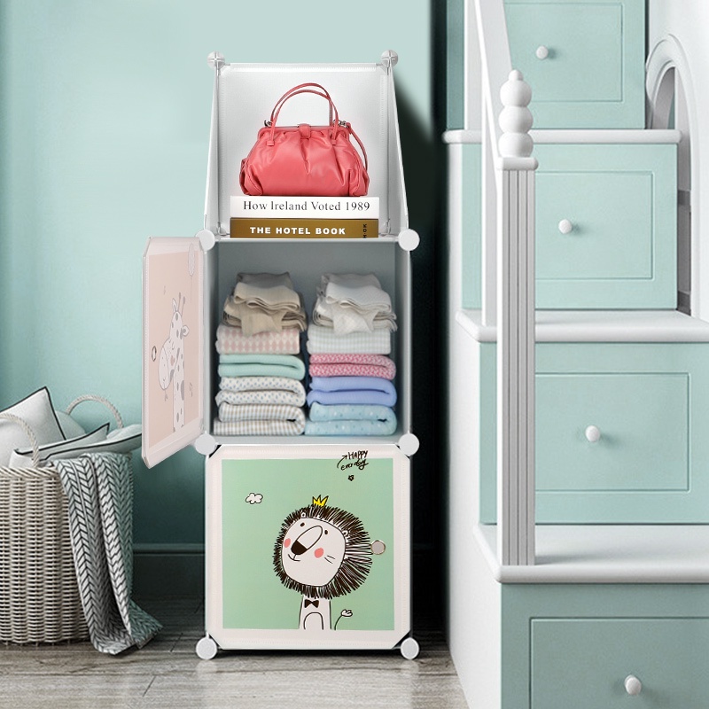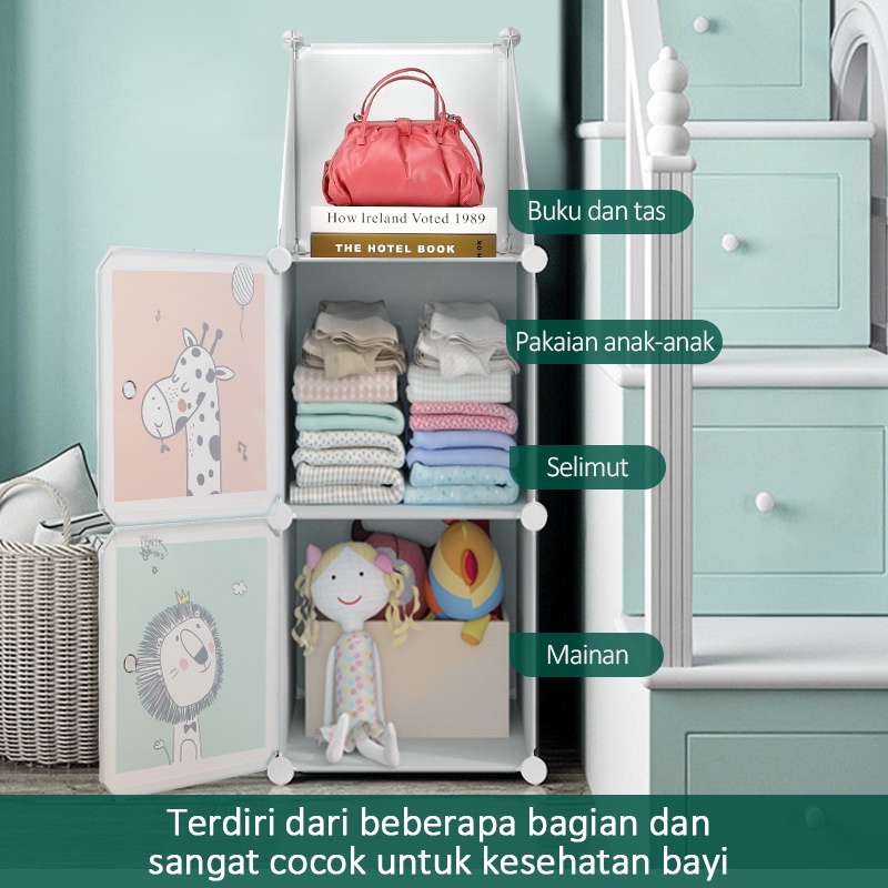 AONEZ lemari pakaian anak lemari plastik 2 muka 2 slot wardrobe Rak lemari