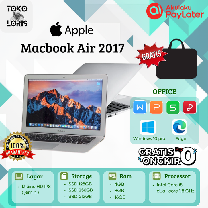 MACBOOK AIR 2015 DAN AIR 2017 13INCH SILVER CORE I5 - RAM 8GB - SSD 128GB SECOND ORIGINAL MACBOOK PRO GARANSI RESMI