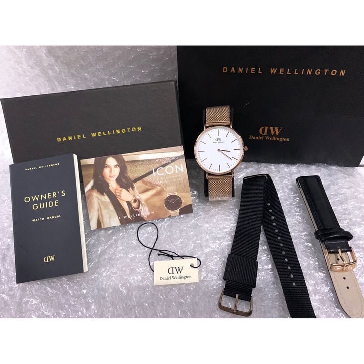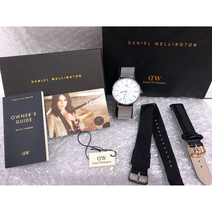 Jam Tangan Pria/Wanita Daniel Wellington Tali Rantai Pasir + Kulit + Kanvas Free Box Ori, Paperbag & Baterai