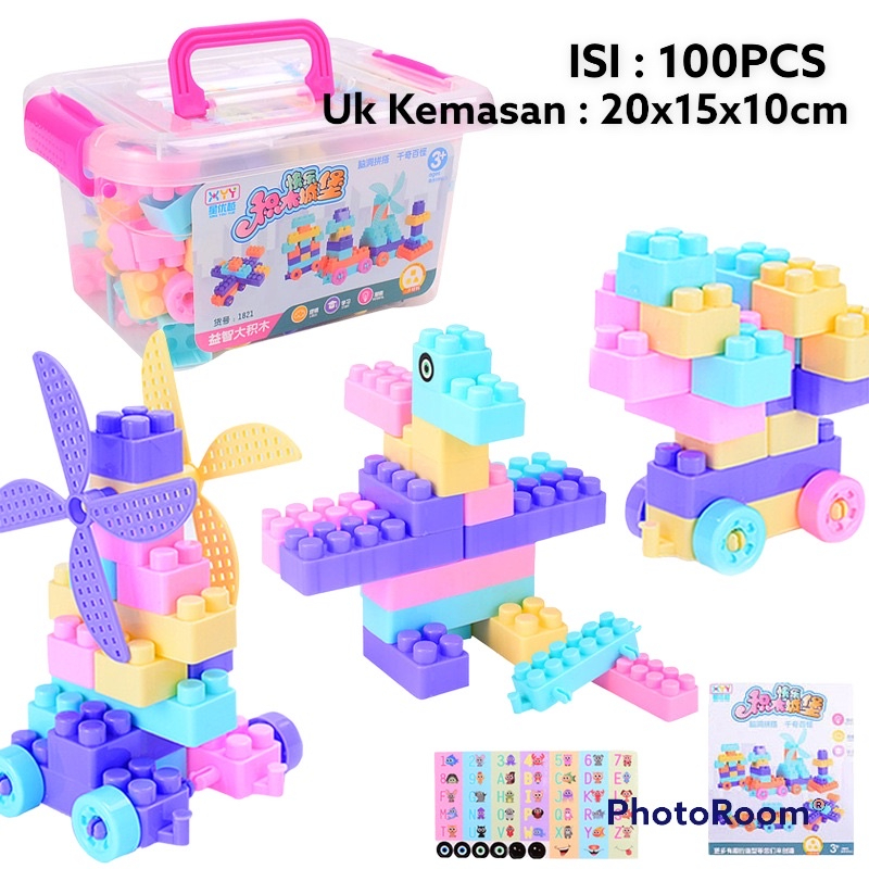 MAINAN ANAK BLOCK BRICK SUSUN ISI 100PCS KEMASAN BOX