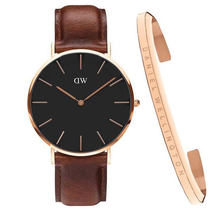 Jam Tangan Wanita & Pria Tali Kulit Free Box, Paperbag & Baterai Cadangan