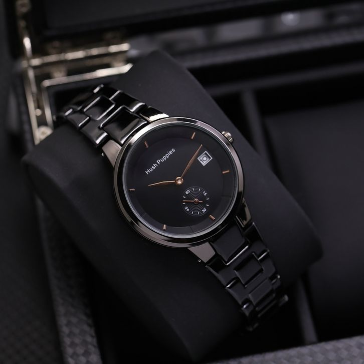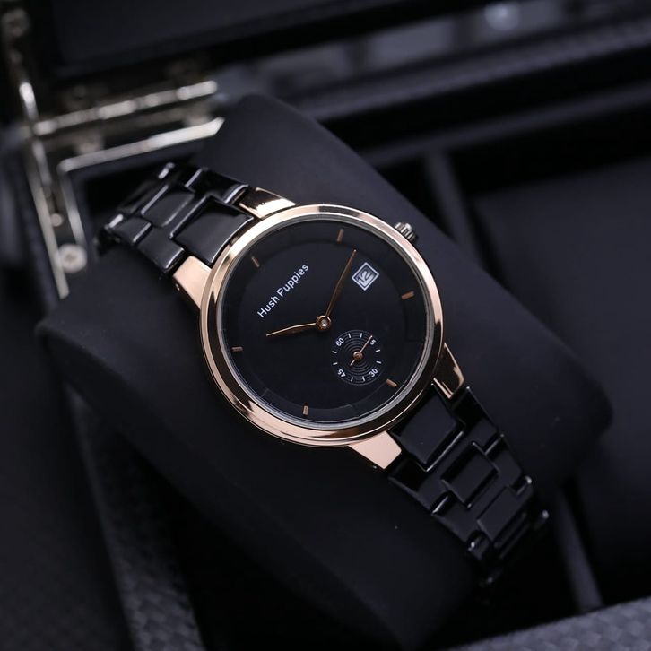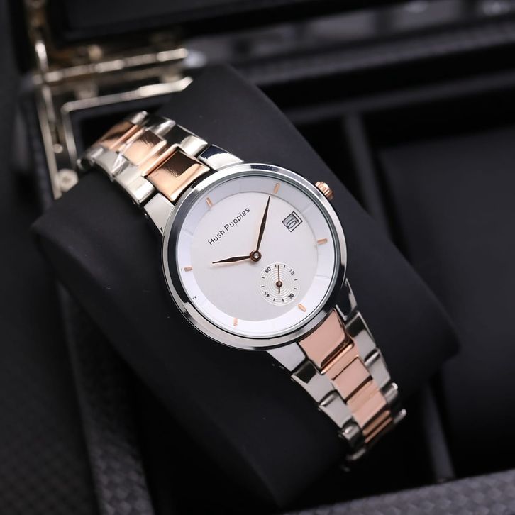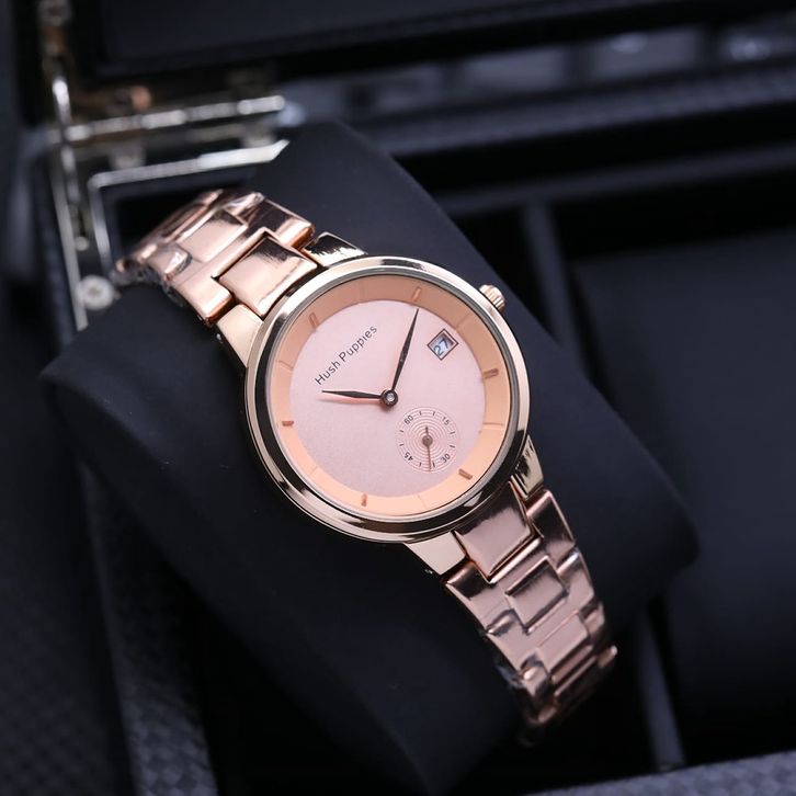 Jam Tangan Wanita Mewah Hush Puppies Analog Tali Rantai Tanggal Aktif