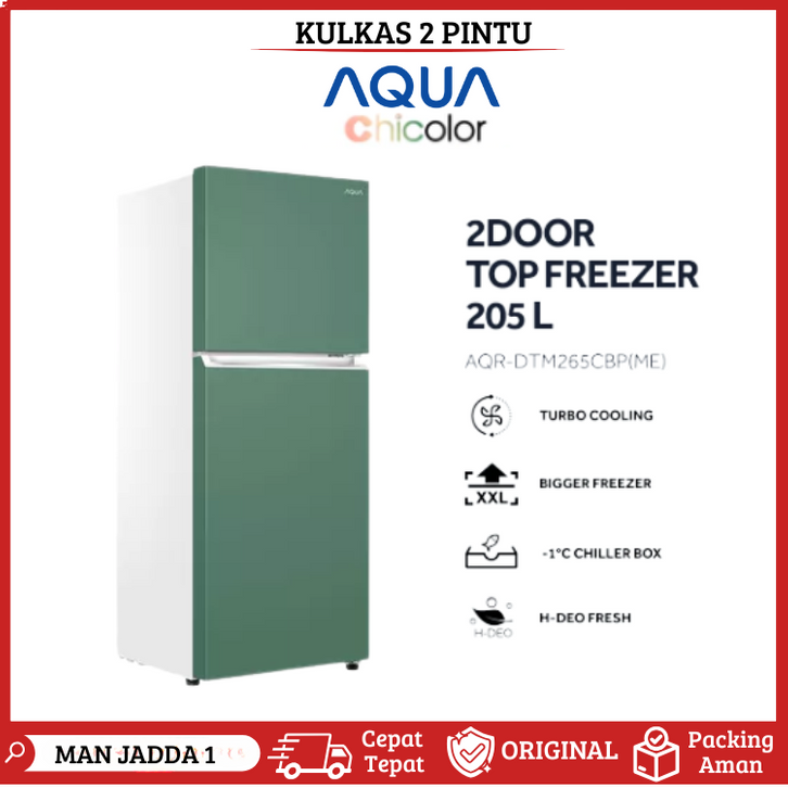 KULKAS AQUA 2 1 PINTU CHICOLOR 205 L 165L TURBO COOLING SEMI AUTO DEFROST JUMBO KAPASITAS BESAR TERBARU MURAH