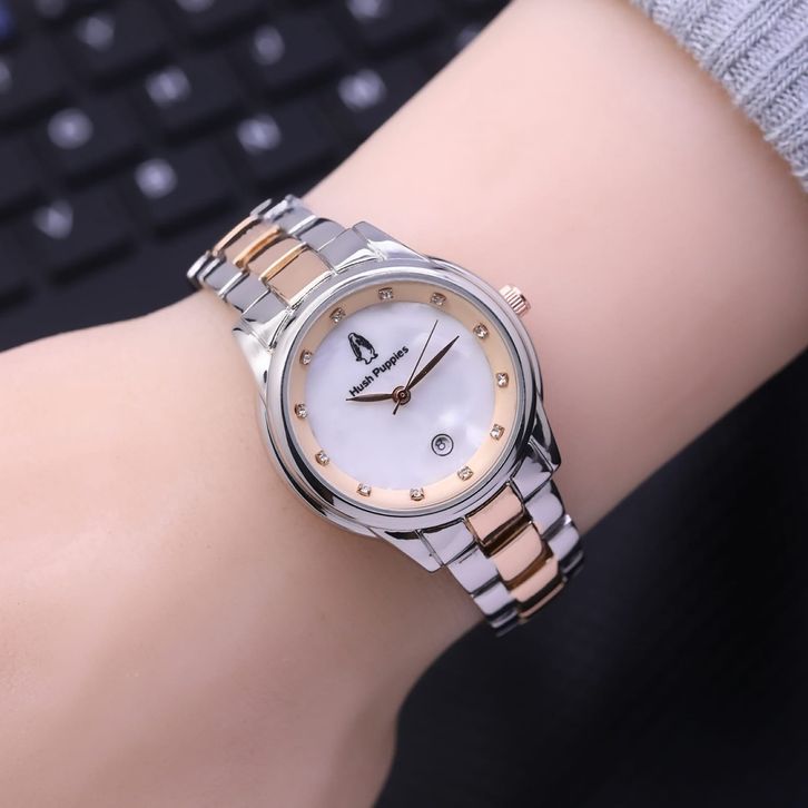 Jam Tangan Wanita Mewah Hush Puppies Tali Rantai Tanggal Aktif Free Box & Baterai Cadangan